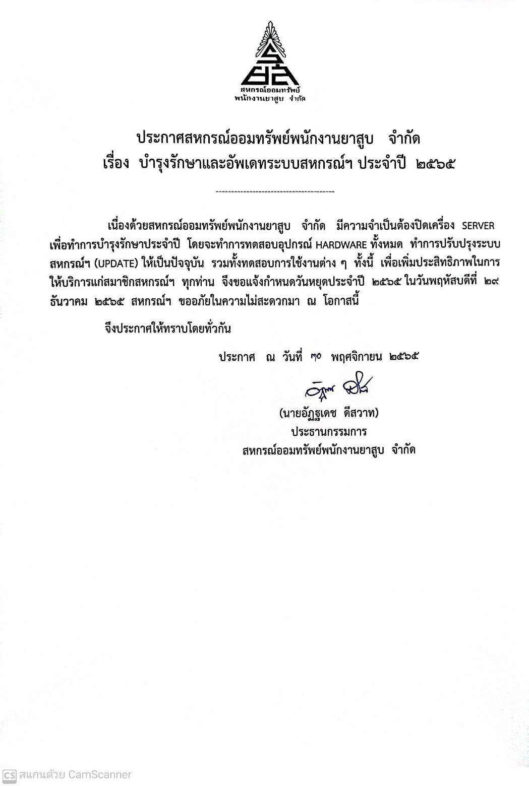 ติดต่อสหกรณ์