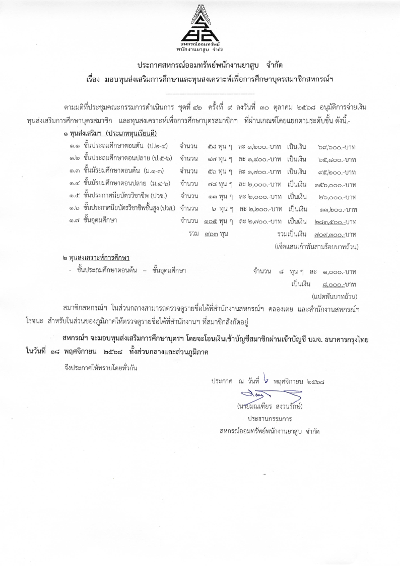 NEWS ประกาศสหกรณ์ฯ เรื่อง มอบทุนส่งเสริมการศึกษาและทุนสงเคราะห์เพื่อการศึกษาบุตรสมาชิกสหกรณ์ฯ 6 พฤศจิกายน 20256 พฤศจิกายน 2025 Kriskhajorn Boonyasopat