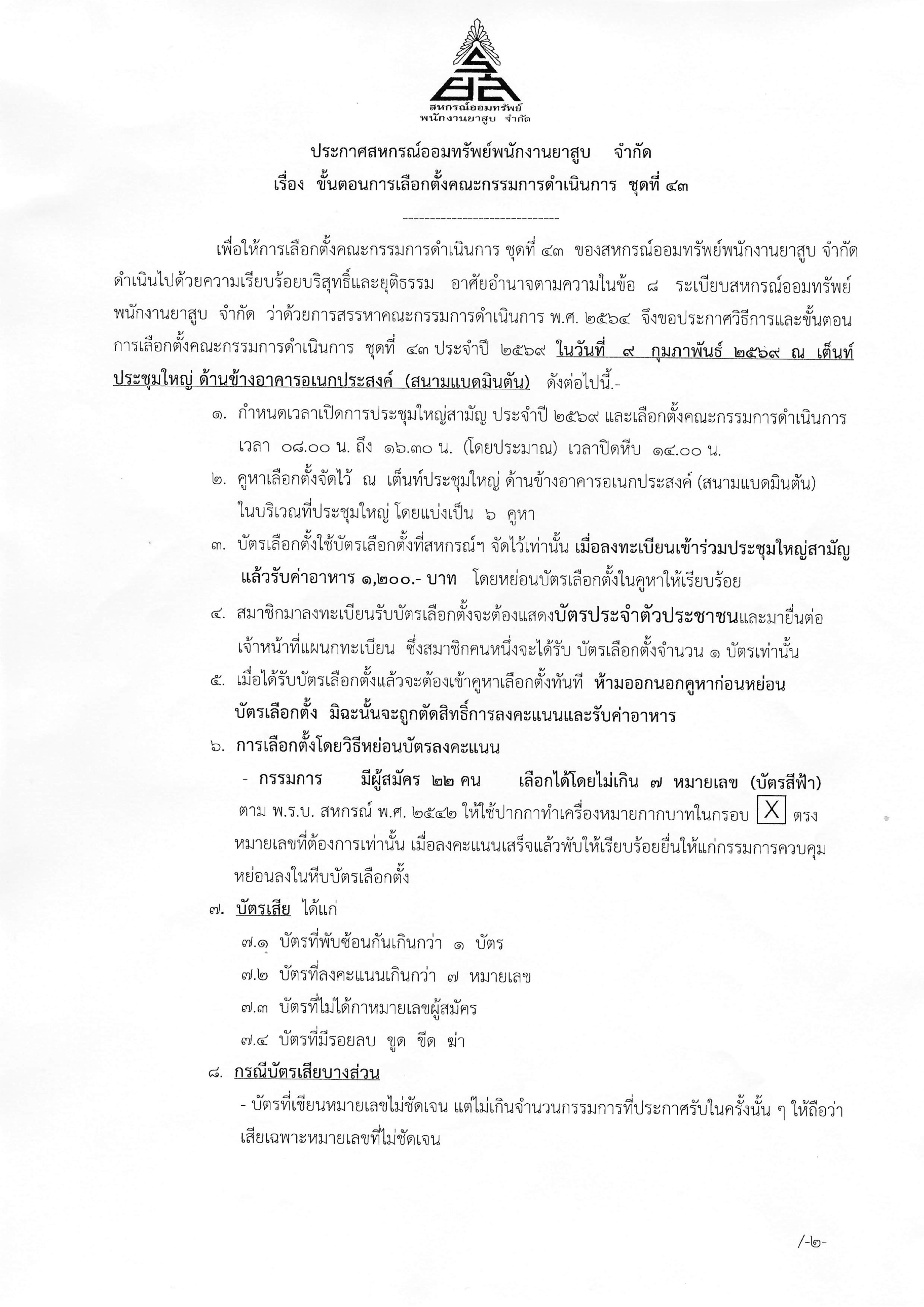 NEWS ประกาศสหกรณ์ฯ เรื่อง ขั้นตอนการเลือกตั้งคณะกรรมการดำเนินการ ชุดที่ 43 22 มกราคม 2026 Kriskhajorn Boonyasopat